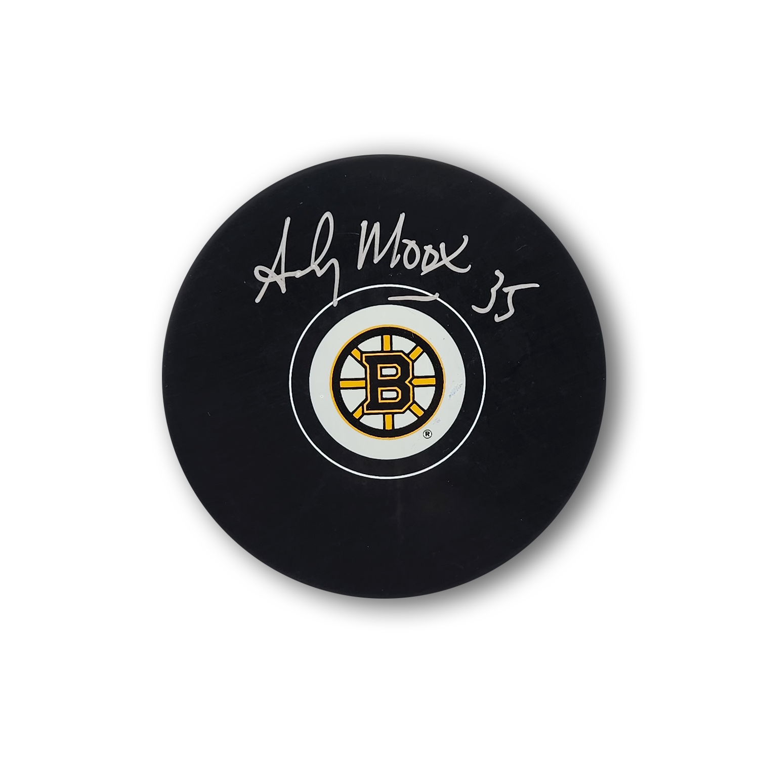 This Boston Bruins Hockey Puck has been autographed by Andy Moog