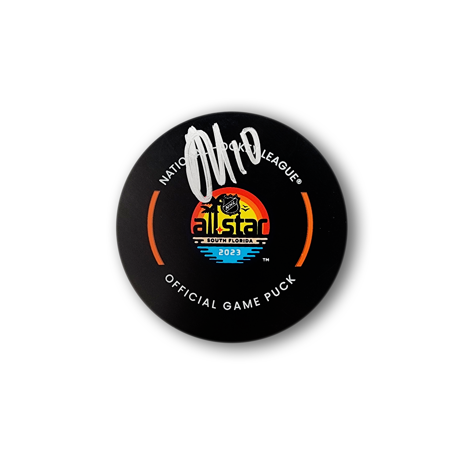 This 2023 NHL All Star Game Official Hockey Puck has been autographed by Artemi Panarin
