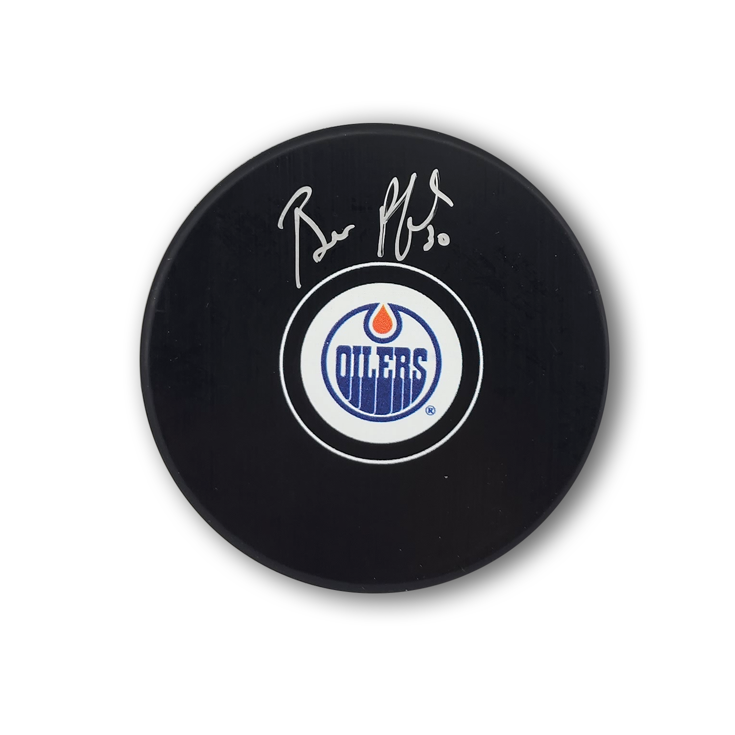 This Edmonton Oilers Hockey Puck has been autographed by Bill Ranford