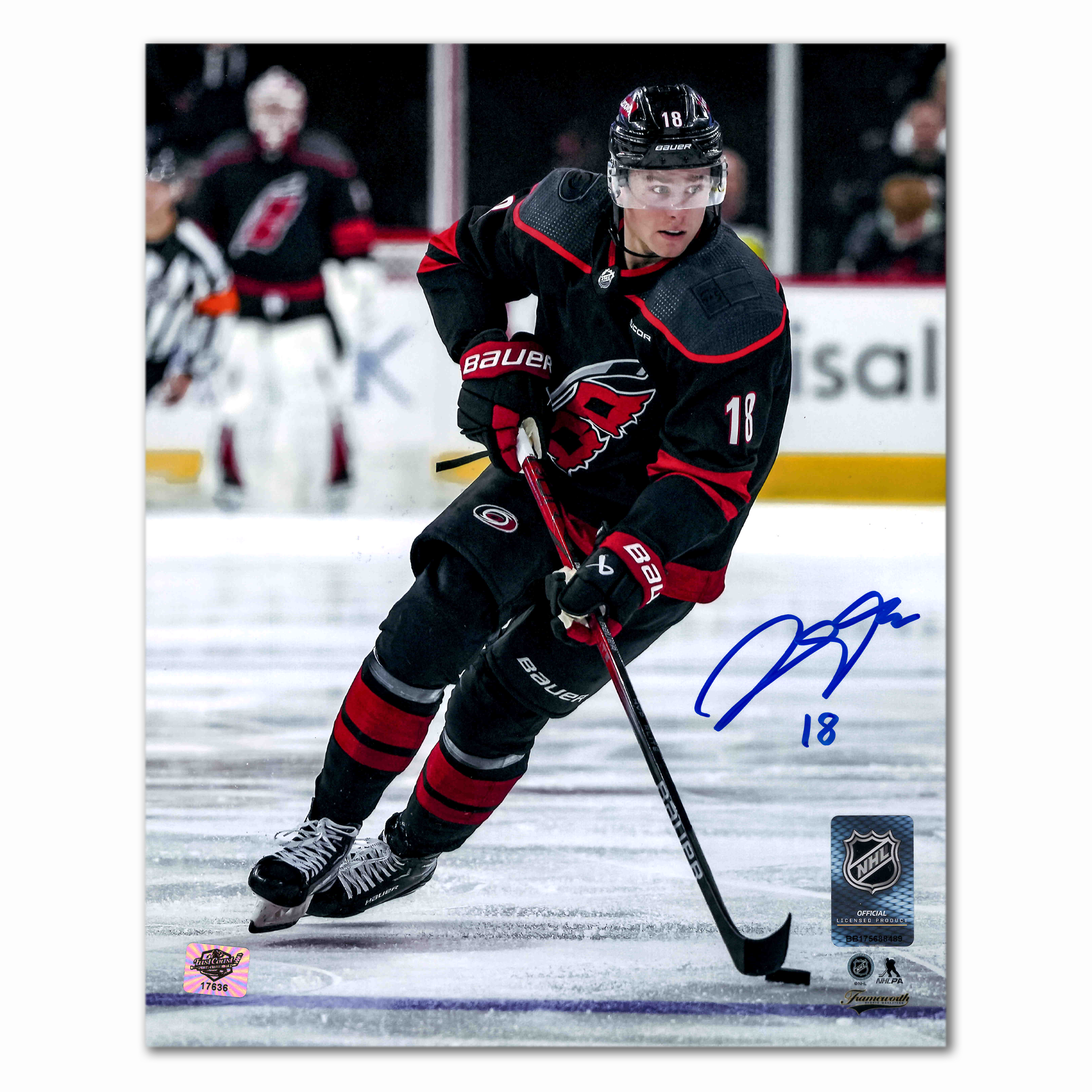 This Carolina Hurricanes Photo has been autographed by Jack Drury