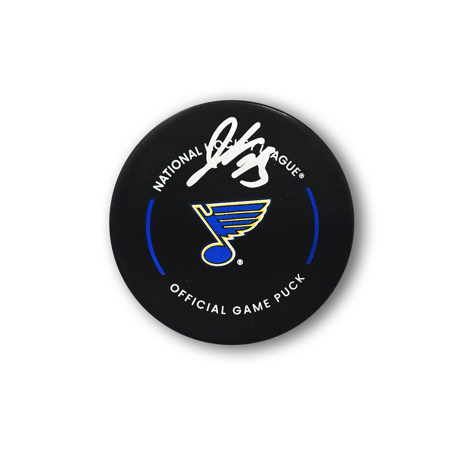 This St. Louis Blues Hockey Puck has been autographed by Jordan Kyrou