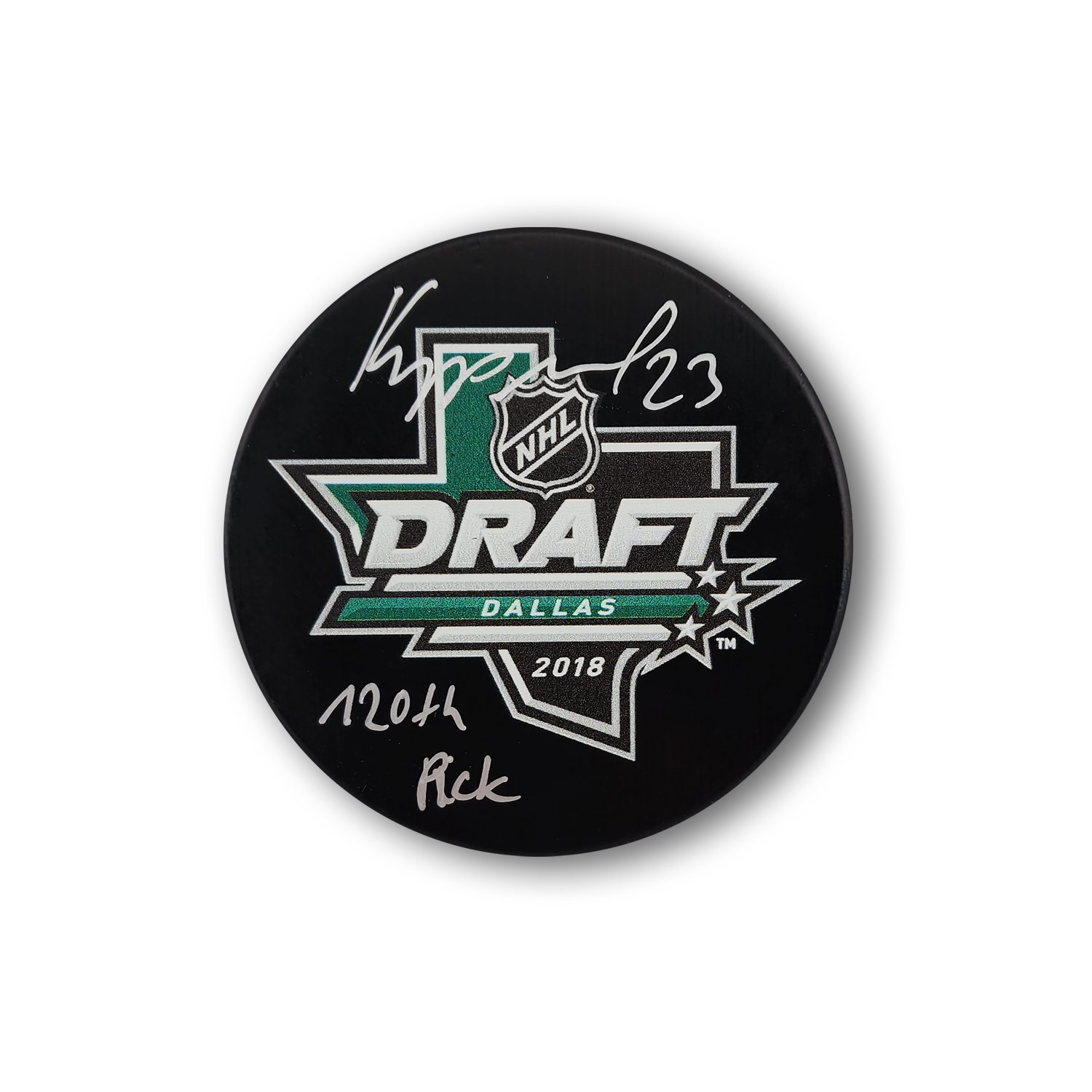 This 2018 NHL Draft Hockey Puck has been autographed and Inscribed by Philipp Kurashev