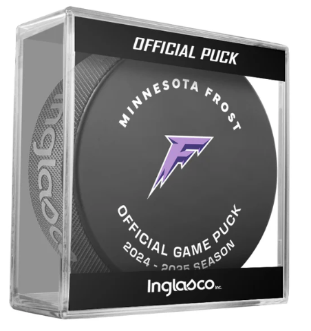 Elevate your hockey collection with the official PWHL Minnesota Frost game puck for the 2024-25 season. Designed and produced by the trusted brand Inglasco Inc., this puck is not just a piece of memorabilia; it’s a vital part of the game.